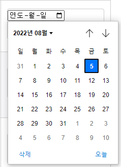 날짜(연월일, 시간 없음)를 지정할 수 있는 컨트롤. 브라우저가 지원하는 경우, 활성화 시 날짜를 선택할 수 있는 달력 등을 열어준다.