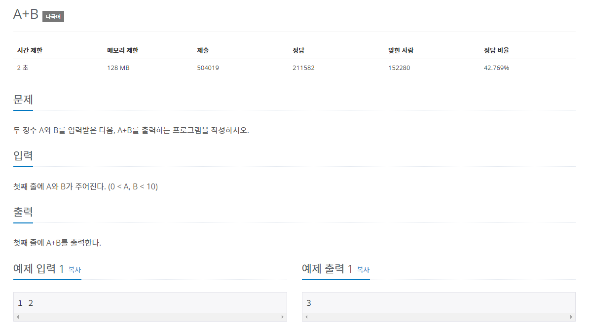 두 정수 A와 B를 입력받은 다음, A+B를 출력하는 프로그램을 작성하시오.