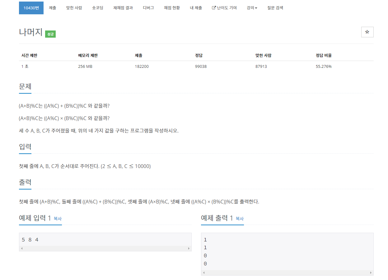 (A×B)%C는 ((A%C) × (B%C))%C 와 같을까?