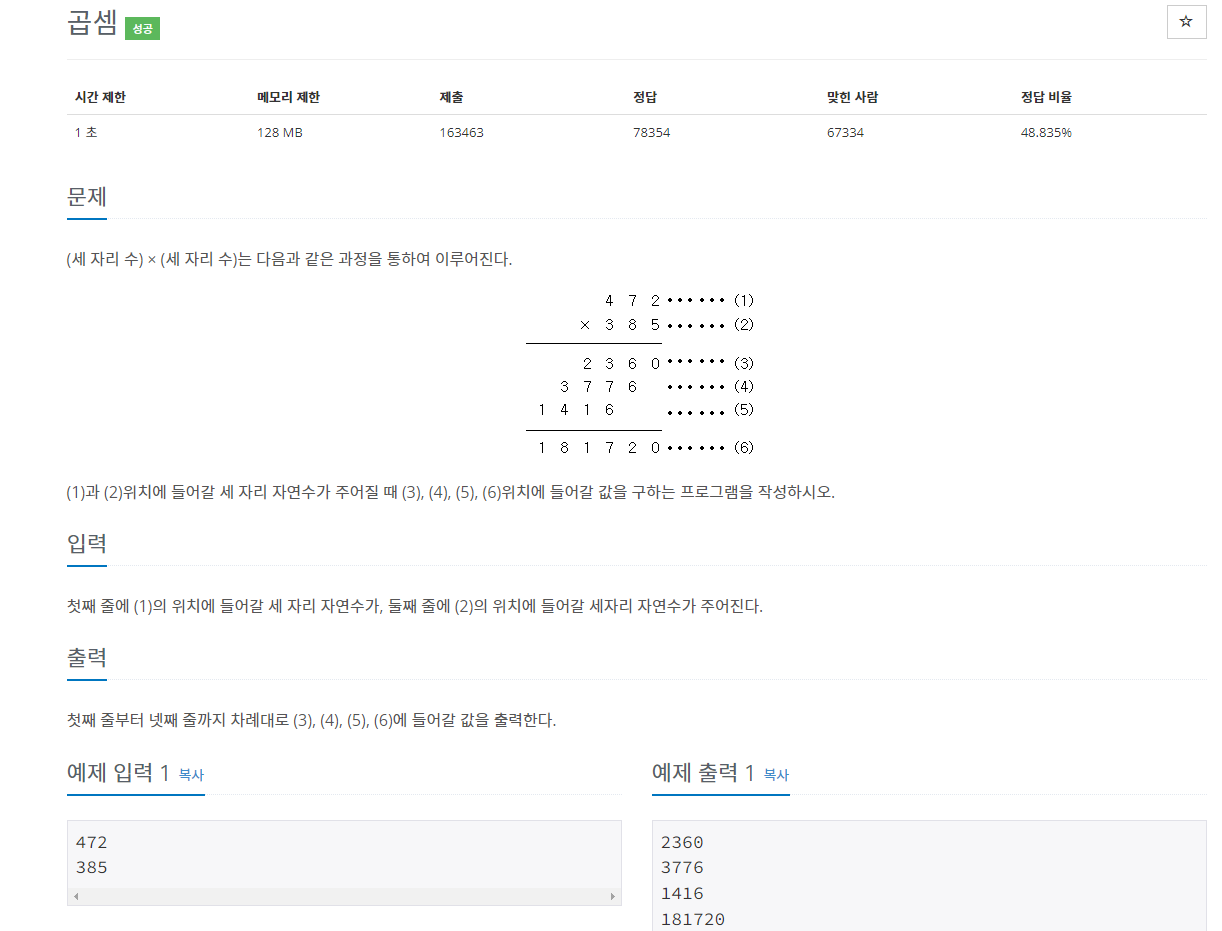 (1)과 (2)위치에 들어갈 세 자리 자연수가 주어질 때 (3), (4), (5), (6)위치에 들어갈 값을 구하는 프로그램을 작성하시오.