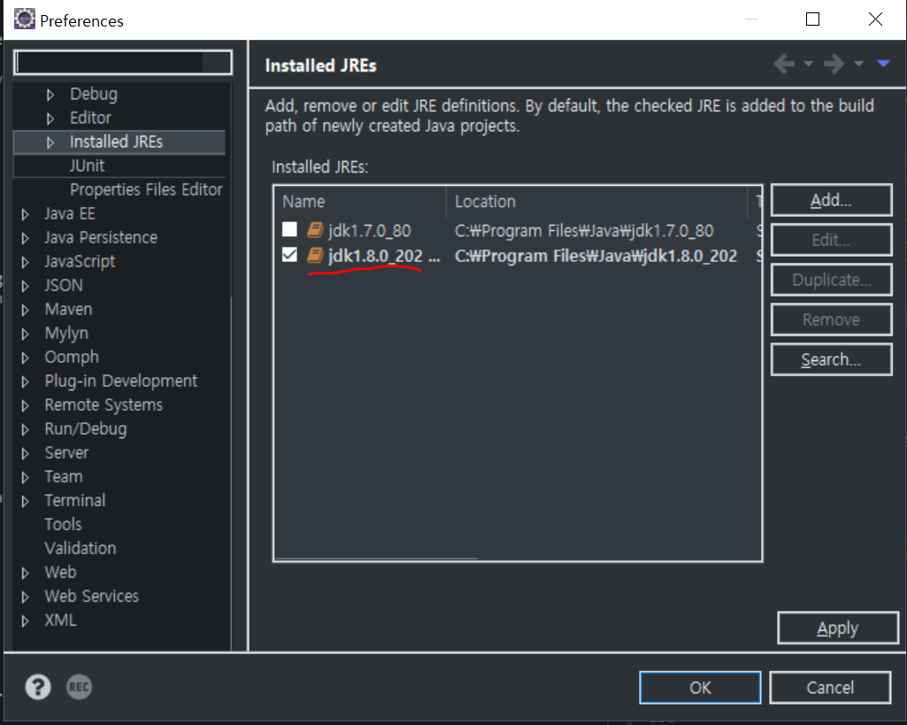 해당 이클립스의 Preferences - Java - Installed JREs 설정에서 제대로 버전이 일치하는지 확인해보면 좋을 것 같다.