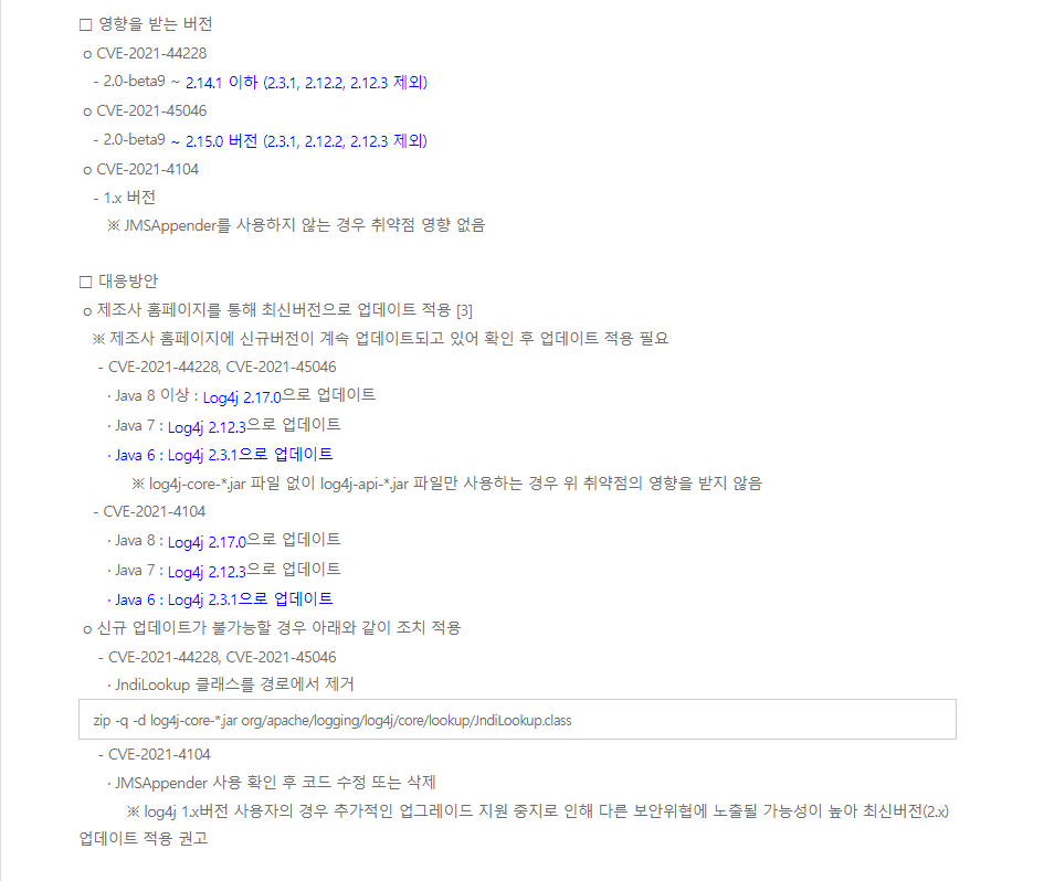 그럼 이제 기존에 사용중이던 Log4j 버전 별로 해결방법을 확인해 보자.