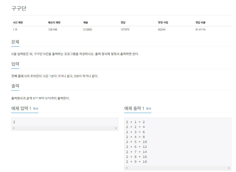 N을 입력받은 뒤, 구구단 N단을 출력하는 프로그램을 작성하시오. 출력 형식에 맞춰서 출력하면 된다.
