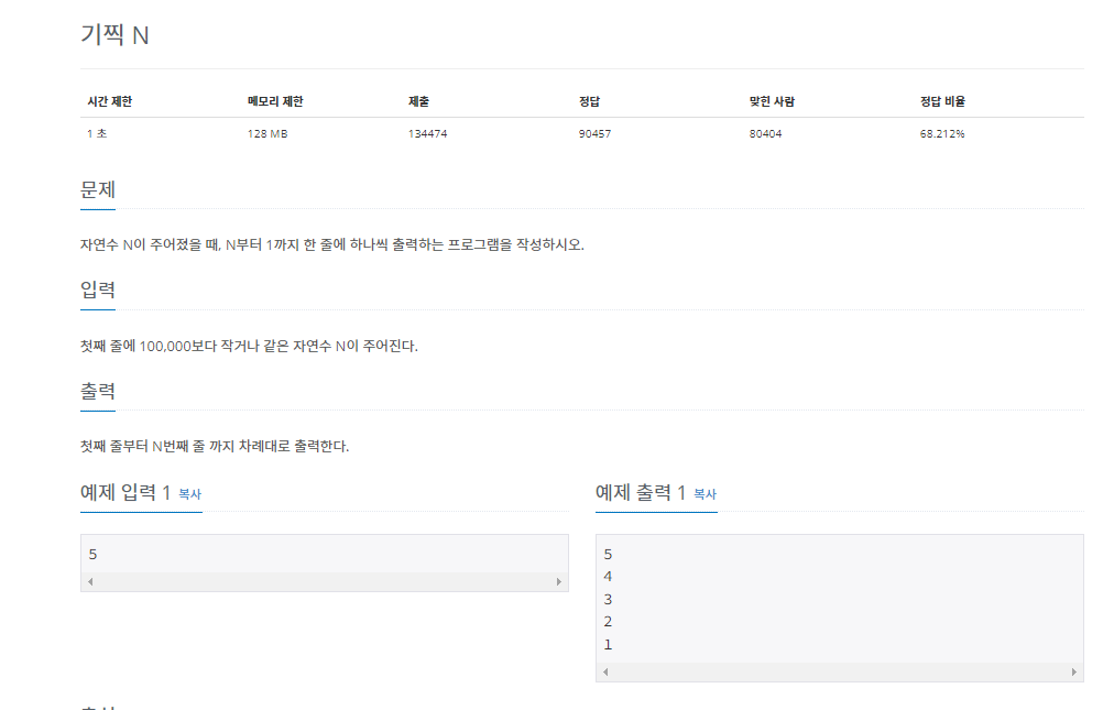 * 예제 입력 1 5 예제 출력 1 5 4 3 2 1